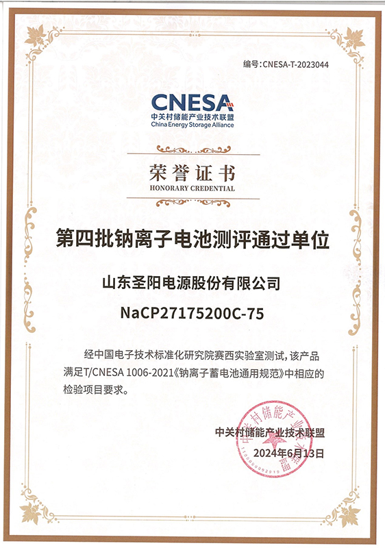 东方圣阳股份荣登“全国第四批钠离子电池测评通过单位”榜单